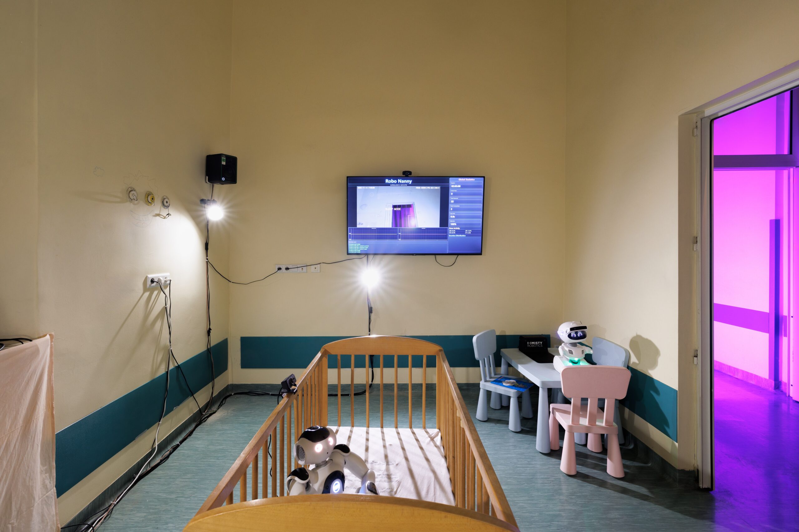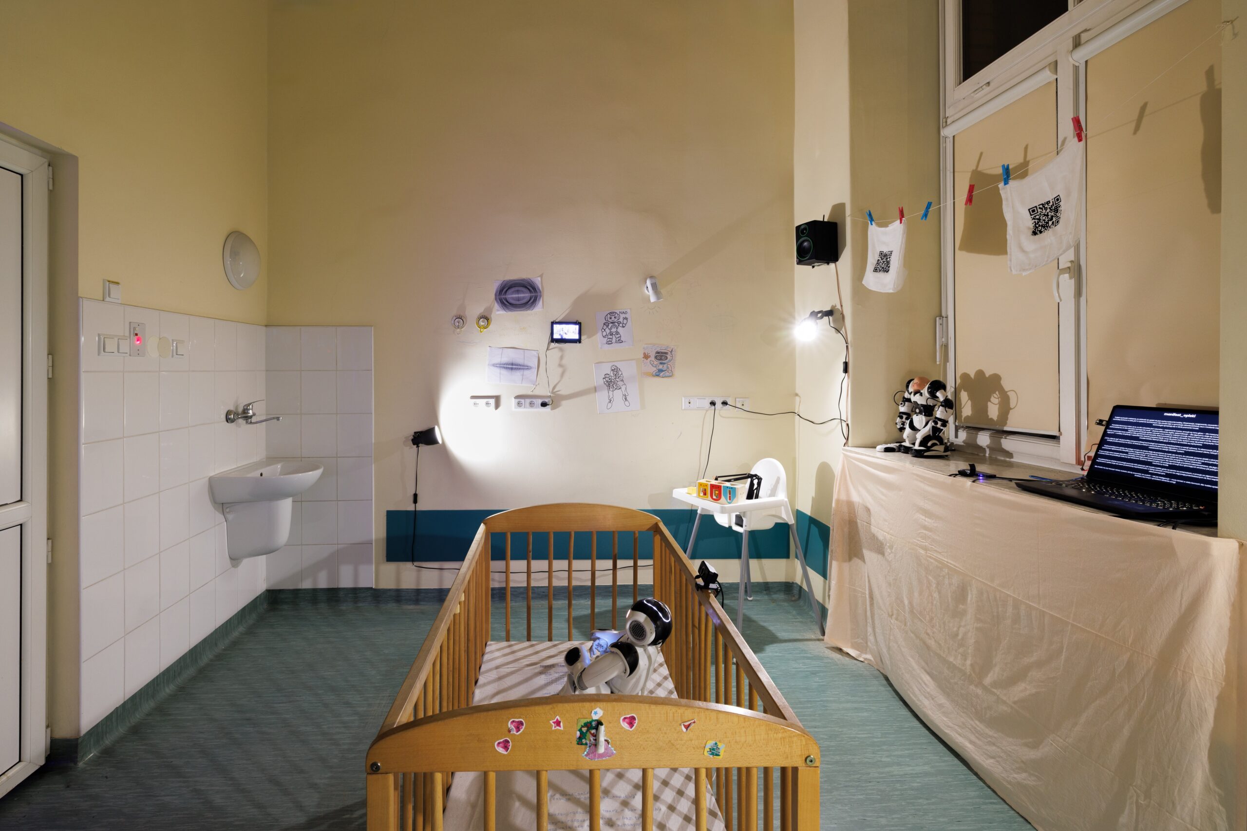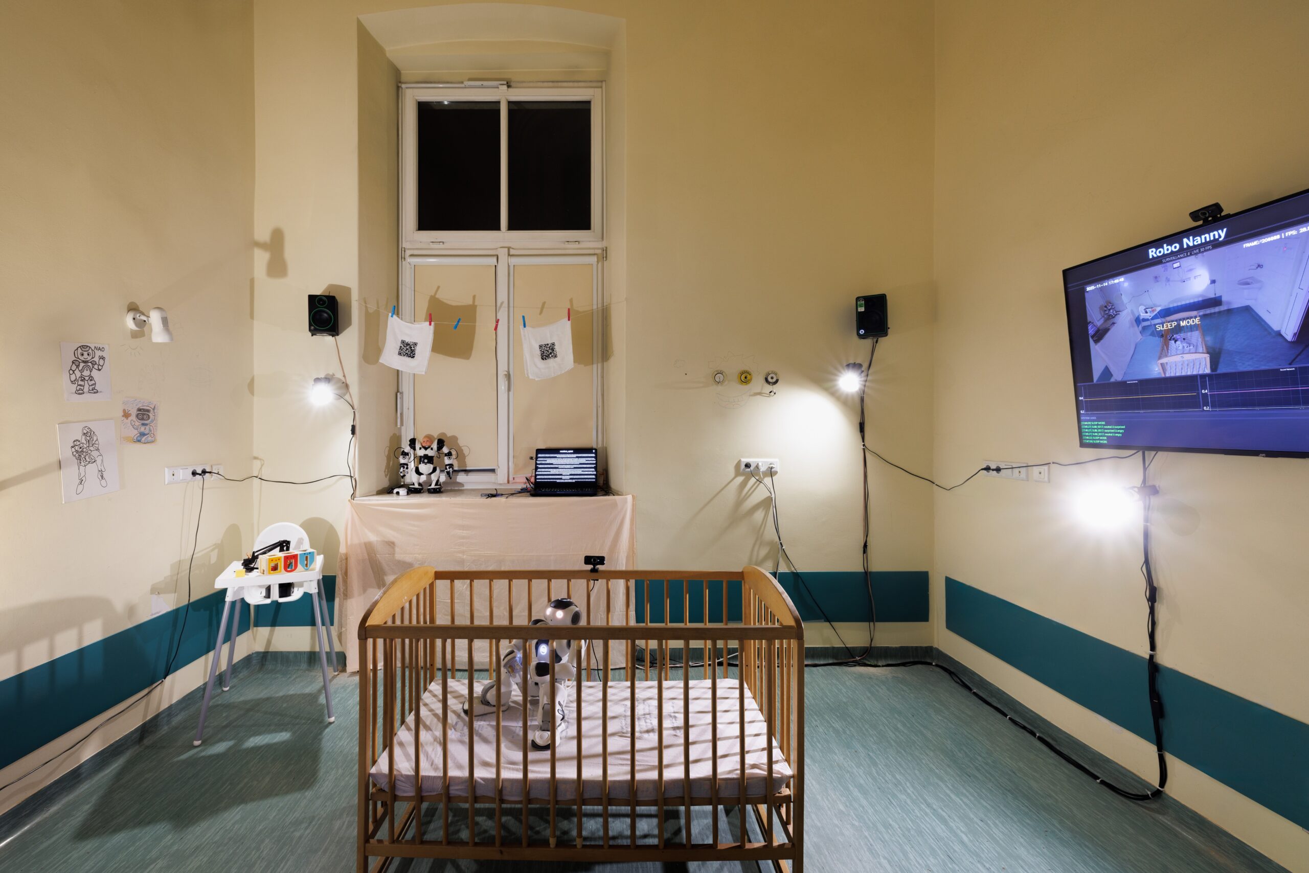The installation is an attempt to capture the tension between care and control, tenderness and surveillance, corporeality and signal. At its center lies a space resembling a child’s room – a place of potential intimacy and safety – yet saturated with systems that record, analyze, and react. The body becomes a source of data. The face – a map to be interpreted. A gesture – a trigger for computation. Machines do not look, they draw conclusions. They do not ask, but they know. The viewer is subjected to a gaze that knows no empathy, only patterns and statistics: care, anxiety, no signal. The robots present in the space do not serve interaction. They are silent witnesses, figures of a new kind of care – indifferent, contactless, posthuman. Their reactions are illogical, and yet deeply rooted in the system’s emotional matrix. Sadness may respond to joy, withdrawal to an outstretched hand. The installation explores a space in which caregiving loses its physicality, and care becomes a function of data processing. The viewer no longer knows whether they are the one checking, or the one being checked. Whether they are offering care, or are the object of it. Whether they still feel, or only transmit. This is not a child’s room. It is a model of the contemporary world – a world that watches, never sleeps, records. A world where presence no longer requires a body, and love can take the form of an alert. “No movement detected for 3 minutes.” “Child in a state of distress.”