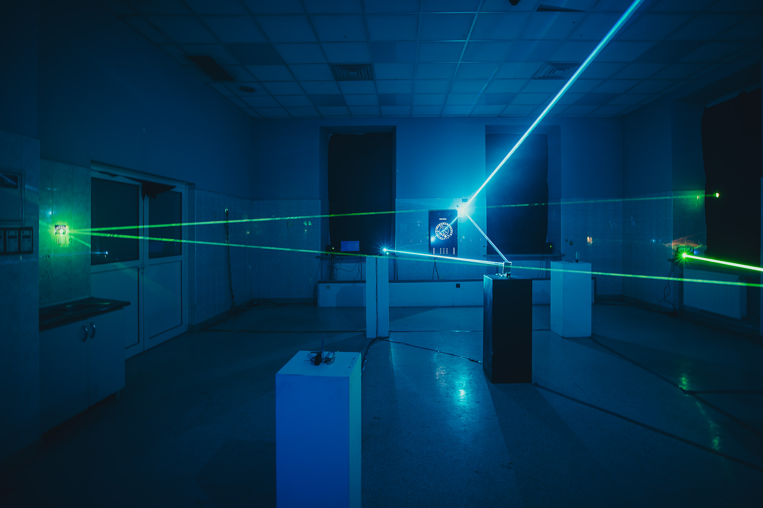 Interaction unfolds as prophecy and choice. In solo mode (1-4 people), following the laser line creates resonance: light stabilizes, sound harmonizes. Defying the suggestion triggers a glitch: the system rapidly recalculates, lasers become disharmonious, sound turns dissonant. With larger groups, the system shifts to Constellation Mode, relinquishing individual control for social geometry: lasers connect people with lines, creating living, shifting constellations based on spatial relationships between bodies. Cosmical Interferences is an attempt to reclaim the Technological Sublime—the viewer feels „seen” by a higher-order intelligence possessing memory and intent, where code becomes liturgy connecting human biology, digital memory, and the physics of the universe.